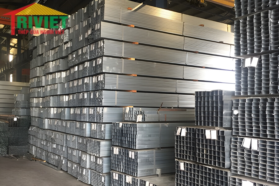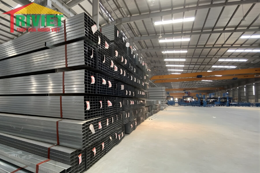 - Quy cách lớn: Thép hộp vuông, chữ nhật và ống tròn kích thước lớn, dùng cho nhà xưởng, kho bãi, kết cấu công nghiệp, cầu cảng, công trình chịu tải cao.
