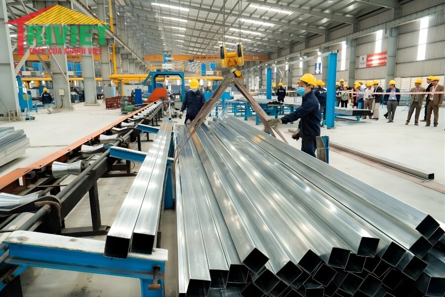 Ở giai đoạn hoàn thiện, thép được cắt băng, tạo hình và gia công thành thép hộp vuông, hộp chữ nhật hoặc ống tròn theo tiêu chuẩn kỹ thuật. Nhờ kiểm soát chặt chẽ từng khâu, sắt hộp mạ kẽm Hoa Sen đáp ứng tốt yêu cầu về chất lượng, tính thẩm mỹ và độ bền cho các công trình xây dựng và trang trí nội thất.