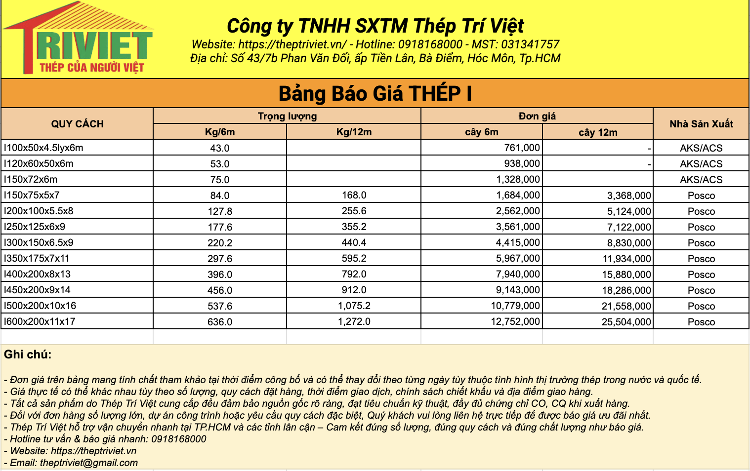 Không chỉ dừng lại ở hoạt động phân phối, Thép Trí Việt còn chú trọng dịch vụ tư vấn kỹ thuật chuyên sâu, hỗ trợ khách hàng lựa chọn thép hình Việt Nhật phù hợp với mục đích sử dụng, yêu cầu kỹ thuật và ngân sách đầu tư. Nếu bạn đang tìm kiếm nguồn thép chính hãng, sẵn kho, giá hợp lý và dịch vụ chuyên nghiệp, hãy liên hệ Thép Trí Việt để được tư vấn chi tiết và báo giá chính xác cho công trình của mình.