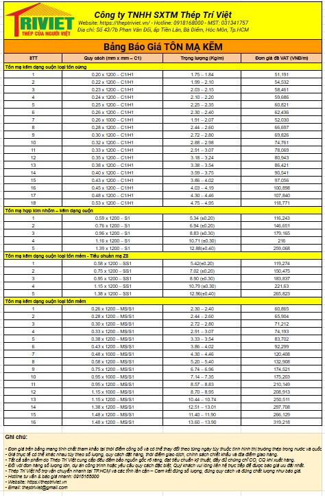 Tôn mạ kẽm là giải pháp vật liệu bền – đẹp – tiết kiệm, phù hợp với mọi loại công trình. Việc nắm rõ thông số kỹ thuật, ưu điểm và giá thành sẽ giúp bạn chọn đúng sản phẩm và tối ưu chi phí xây dựng. Nếu bạn cần báo giá tôn kẽm mới nhất hoặc muốn mua hàng chính hãng với số lượng lớn, hãy liên hệ ngay Thép Trí Việt để được hỗ trợ nhanh chóng và giao hàng tận nơi.